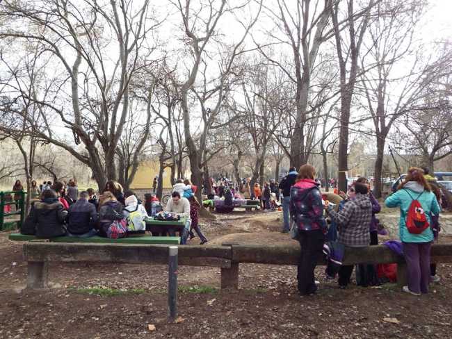Pero, ¿cómo celebramos los alagoneros esta jornada? Os lo cuento. Ya muy temprano, por la mañana, vamos a comprar, a distintos establecimientos, especialmente a las panaderías y pastelería unas tortas de pan que son redondas y que llamamos “de estrella”. Su tamaño depende de la edad o del hambre que tengan las personas que las van a consumir. Son las mujeres, principalmente, quienes preparan una sabrosa tortilla a la que se le añade chorizo, longaniza y, al que le guste también trocicos de tocino. Y como postre nos podemos zampar un plátano y una naranja, pero la naranja tiene que ser madre, es decir, muy grande, que tenga "hijicos". Con la bota de vino, los mayores, y la cantimplora con agua, o algún refresco, los más pequeños, nos vamos al campo. Hace años se iba al río Jalón o a las Mejanas y más actualmente al paraje natural que llamamos El Caracol. Allí se convive, con familiares y amigos, haga frío o calor, truene o nieve. Y los más pequeños se entretienen jugando a la pelota, a la comba, a la goma, a correr…
