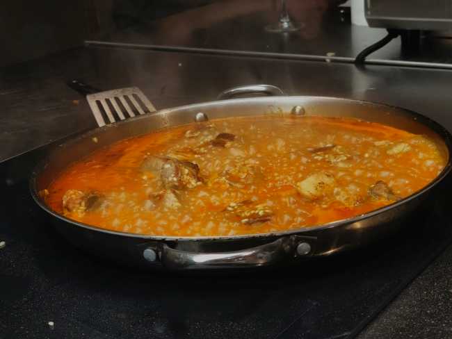 Ya he ido a dos y he invitado a distintos miembros familiares: uno de arroces y paellas y otro de cocina vasca. El tercer curso va a ser moderno y exótico porque así lo ha decidido el joven que me va a acompañar: Iniciación al sushi. Este será gracioso. La experiencia es divertida: conoces a otra gente, te mandan cortar un boniato a cuadraditos de 2cms o a laminar ajos o a remover una crema pastelera mientras te tomas una copa de vino y charlas con los miembros de tu equipo. Me gusta que la chef responda a todas las preguntas que nos van surgiendo y que dé la aprobación a los guisos. Cuando estos ya están listos, emplatamos y a comer. La verdad es que después de dos horas y media de vinitos y cervecitas todo sabe buenísimo. En casa me he atrevido con la paella de costilla de cerdo y boniato al romero. Con socarrat incluido. Dejo para otro día los piquillos rellenos de morcilla y puerro en salsa, el bacalao al pilpil con puré de patata y col y, de postre, una pantxineta. En fin, cualquier actividad que reúna viandas y bebidas, gente simpática y con ganas de aprender y compartir, merece la pena. Y unos consejos: Procuren aventurarse por caminos nuevos. No tengan miedo a lo desconocido. Déjense sorprender. Aquí está la salsa de la vida.