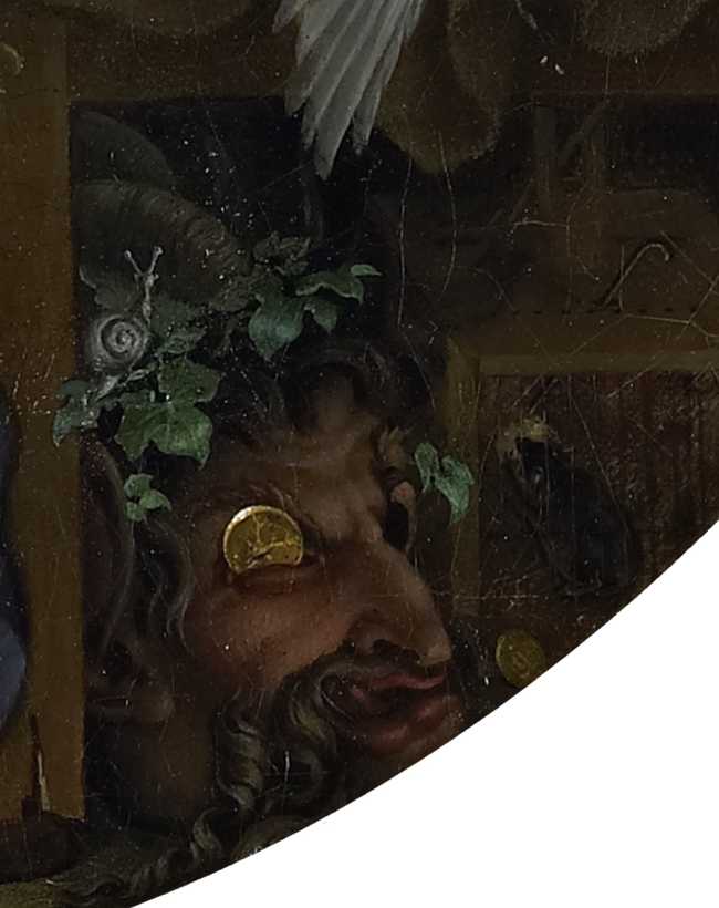 A nadie pasó desapercibida la máscara, con pinta de sátiro, de la parte inferior del cuadro.
